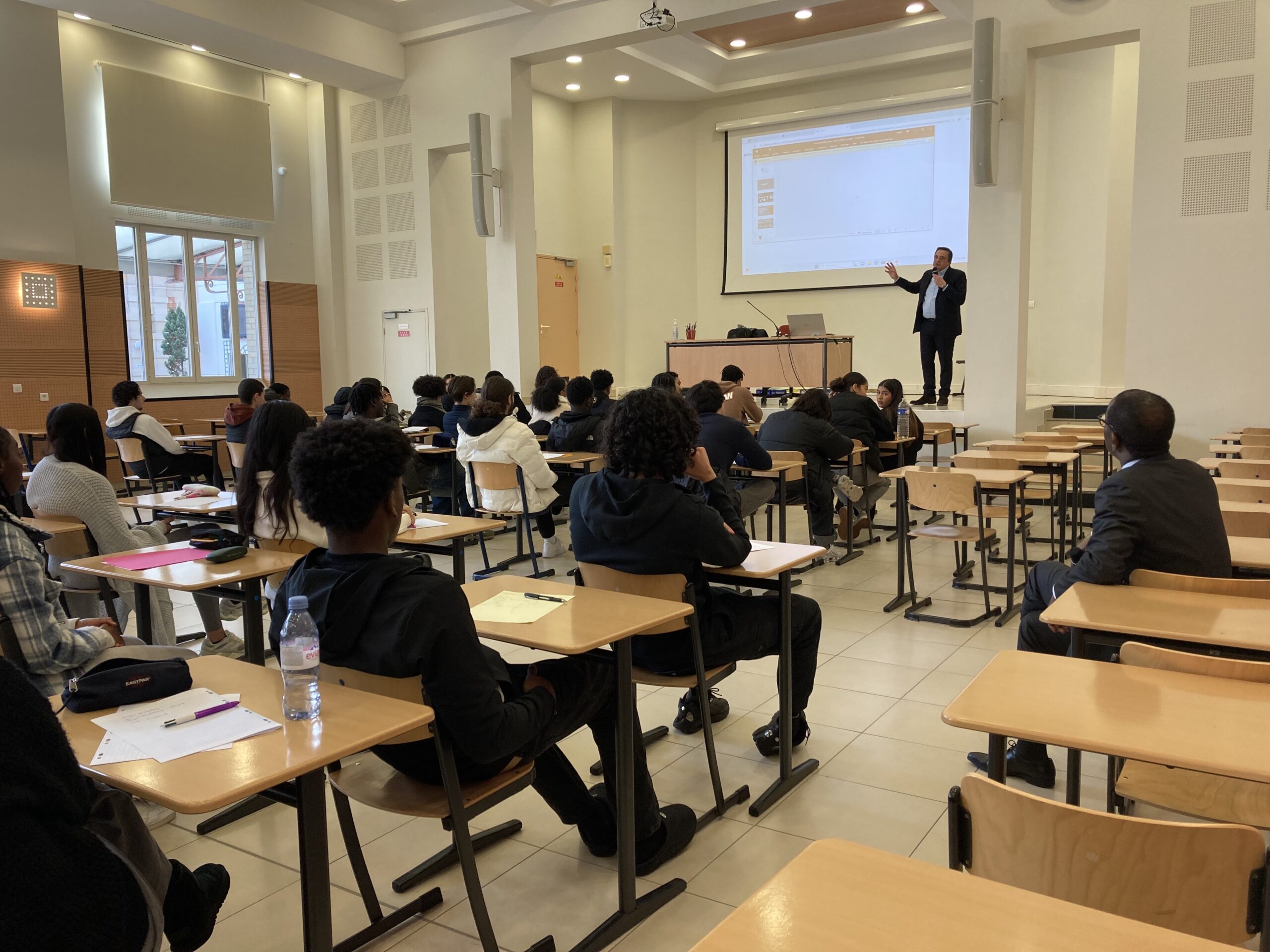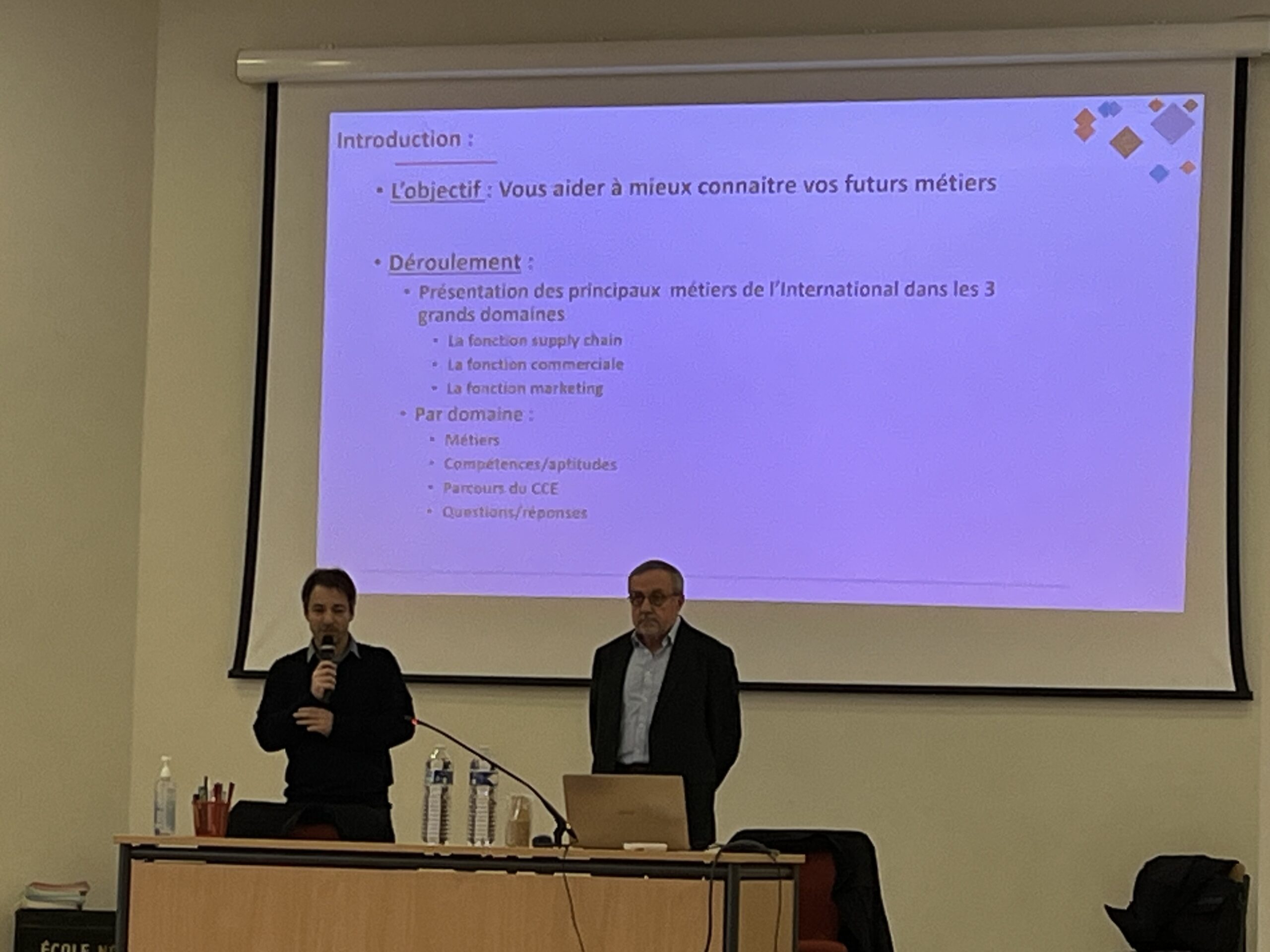 Vendredi 26 janvier, M. Luc Berland et M. Serge Tallon ont présenté les métiers de l’international aux étudiants de première année de BTS CI.