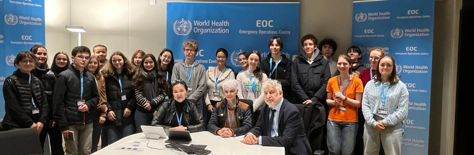 Après avoir découvert le CERN et tous les secrets de la physique quantique à Genève, nous avons eu la chance d’être reçus à l’OMS. Nous y avons rencontré les responsables de la branche santé et rayonnement. Nous avons pu à cette occasion visiter la cellule de crise de l’OMS qui gère et coordonne les actions dans les zones de conflit, ou lors des pandémies.