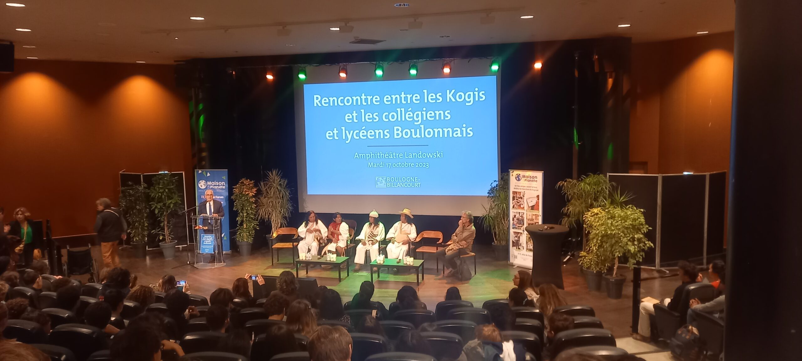 Le mardi 17 octobre, 22 éco-délégués de Notre-Dame, accompagnés de Mmes Gaté, Liaudois et Bernard, ont eu le privilège de rencontrer cinq représentants du peuple Kogi venu de Colombie (parmi lesquels un des gouverneurs, une soigneuse, un mamu – ou « chamane » -, un « semeur de graines et d’idées » et un étudiant). Cet événement exceptionnel, où étaient conviés les éco-délégués des établissements secondaires de la ville, était organisé à l’espace Landowski par la mairie de Boulogne et la Maison de la planète.