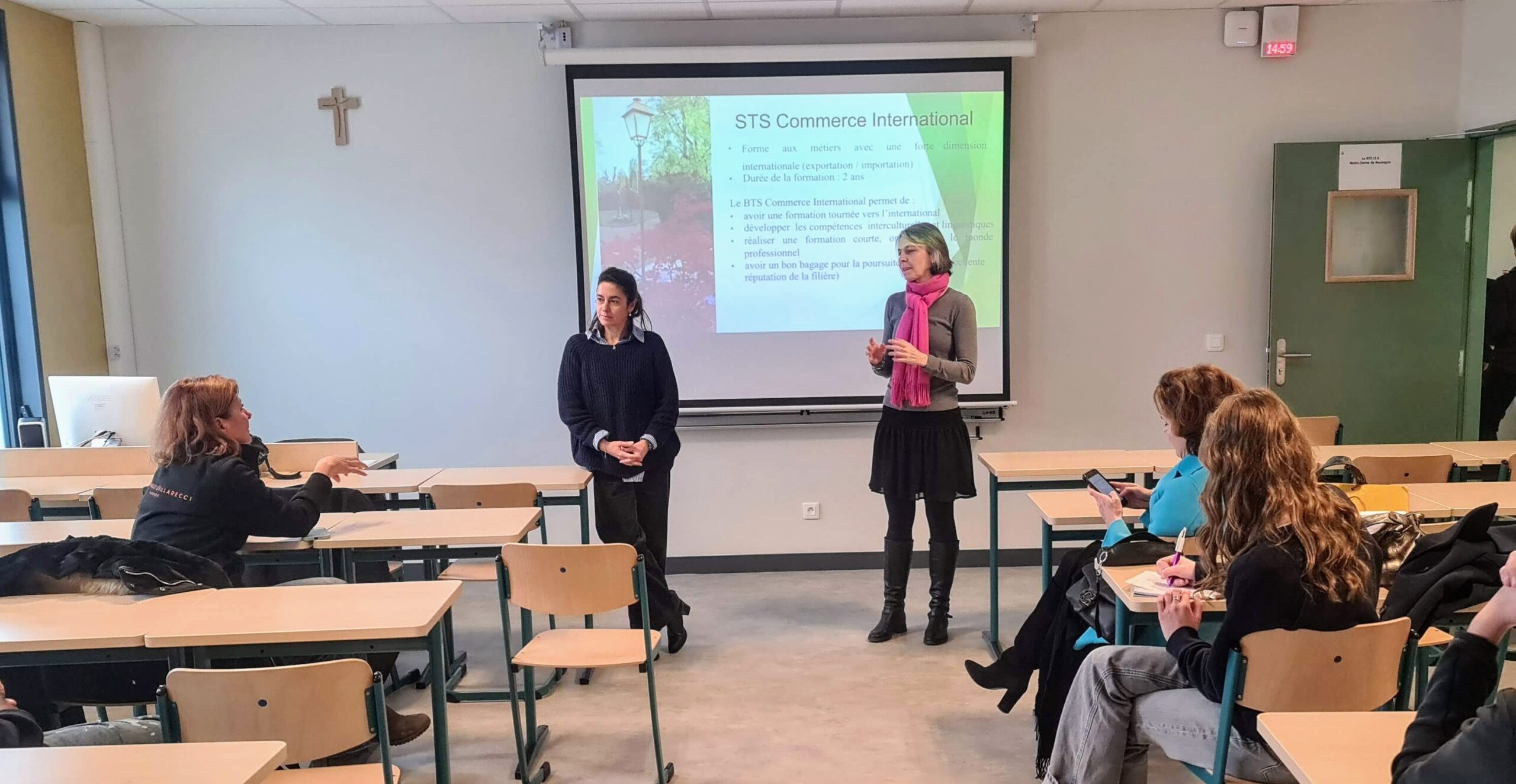 L’objectif était de leur présenter les différentes formations et spécialités proposées, de la seconde à la licence. Ainsi que les particularités du Lycée Notre Dame et notamment le renforcement linguistique et l’expression orale, la préparation aux concours et les études dirigées.